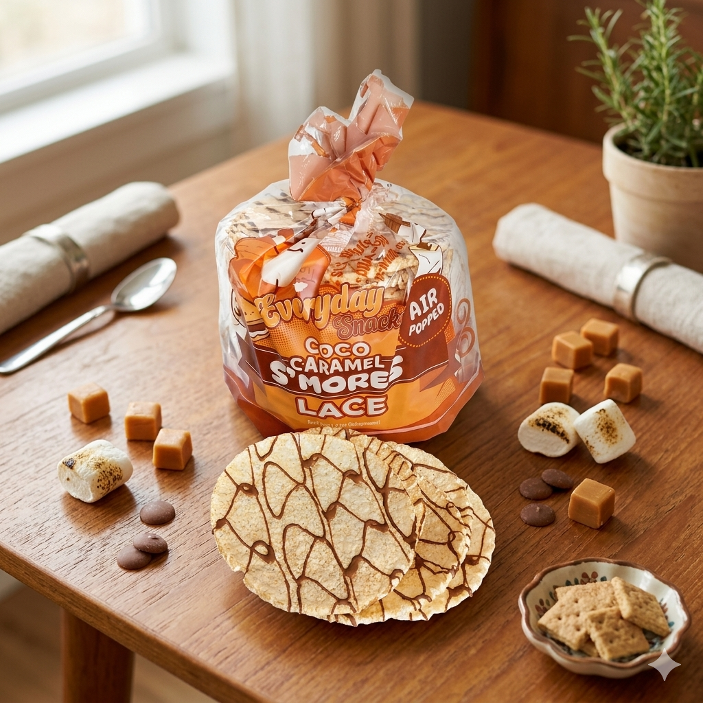 Elevate your snacking with the ultimate campfire-inspired treat. COCO LACE Caramel S’mores features our signature light-as-air grain cakes, drizzled with rich, buttery caramel and the nostalgic sweetness of toasted marshmallows. It’s the classic s’mores experience you love. Your sweet escape, one golden pop at a time.