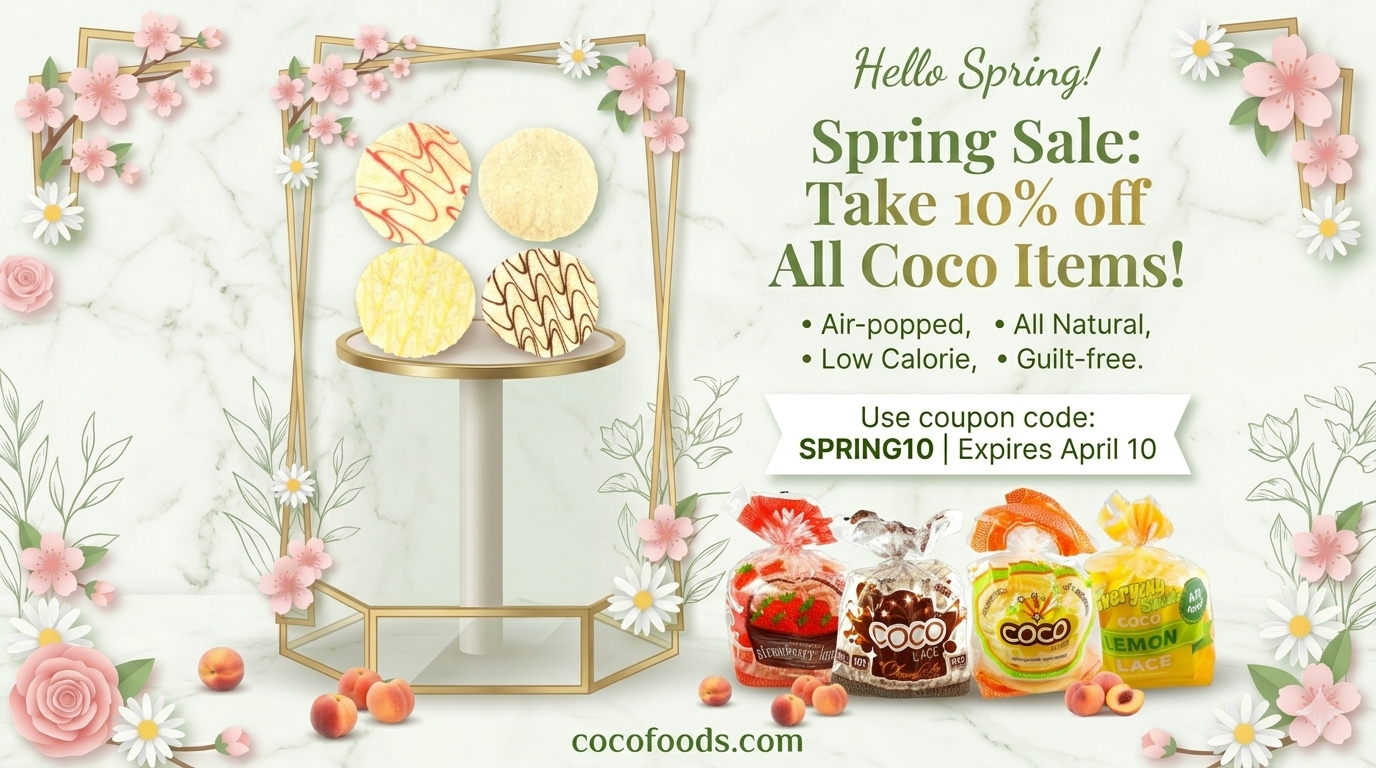SPRING SALE! COUPON CODE: SPRING10 By Posted April 1, 2026 In News & Events SPRING SALE! COUPON CODE: SPRING102026-04-012026-04-01https://www.cocofoods.com/wp-content/uploads/2020/05/logo_final.pngCOCO FOODShttps://www.cocofoods.com/wp-content/uploads/2026/04/gemini_generated_image_c9prmzc9prmzc9pr.png200px200px 0 cocofoods Recent PostsHoliday Sale ! Coupon Code holiday10Thanksgiving promoHalloween SeasonLabour Day Sale Leave a Comment Cancel reply Save my name, email, and website in this browser for the next time I comment. Δ